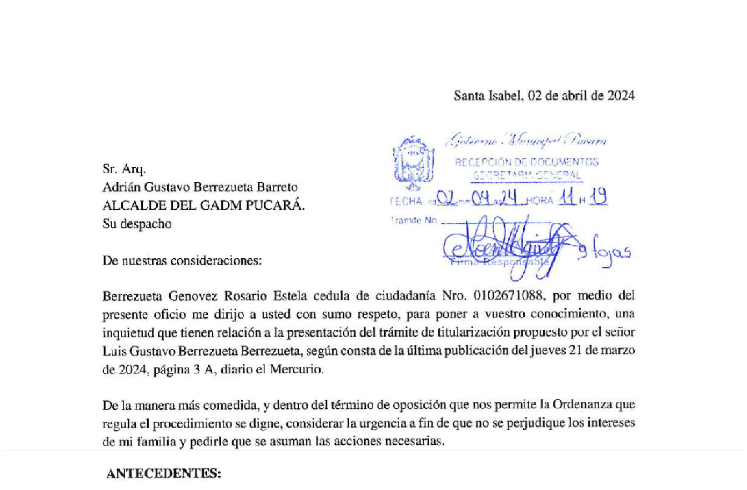 El Gobierno Autónomo Descentralizado Municipal del cantón Pucará, en cumplimiento del Art. 90 de la Ley Orgánica del Consejo de Participación Ciudadana y Control Social.